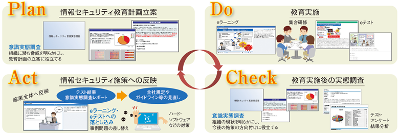 PC・USBの紛失や置忘れ、データの誤公開・誤配布など、情報セキュリティの事故は、人の不注意によって起こるものが多く、教職員1人ひとりの意識向上が求められます。そのためには、継続的な教育が必要不可欠です。大学様への豊富な導入実績から得た経験と、「世界一情報セキュリティに厳しい会社」を 目指すパナソニックのノウハウを結集し、貴学にフィットした情報セキュリティ対策のPDCAをトータルでご提供します。